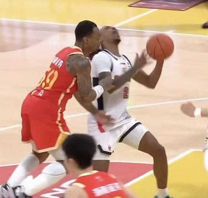 第四节4分23秒,这时候在裁判的干预下,广东的领先优势已经只剩下了11分。麦考尔持球面对塔克。在他做出投篮动作的时候,塔克直接拉了他的手臂,导致麦考尔丢球。这是明显的防守犯规。